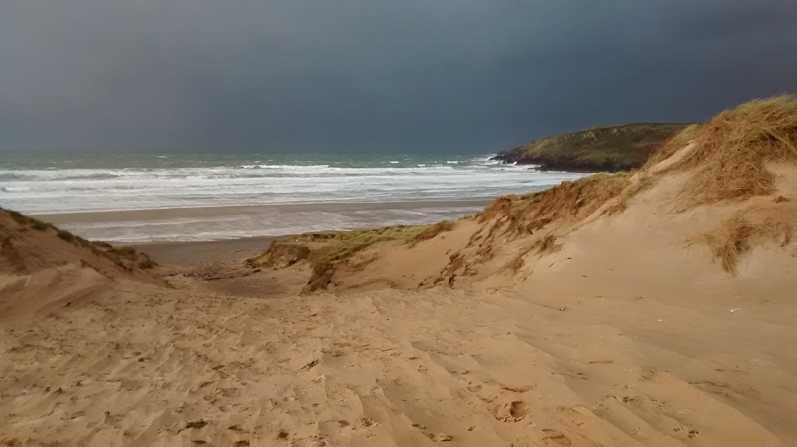 This is Freshwater West in Pembrokeshire, Wales. A blooming beautiful beach with sand dunes to explore, a wide expanse of golden sand to stroll upon as well as dramatic cliffs, multicoloured pebbles and a seaweed hut. And surfers. Lots of surfers. And temporarily, it accommodated Seashell Cottage, home of Dobby.