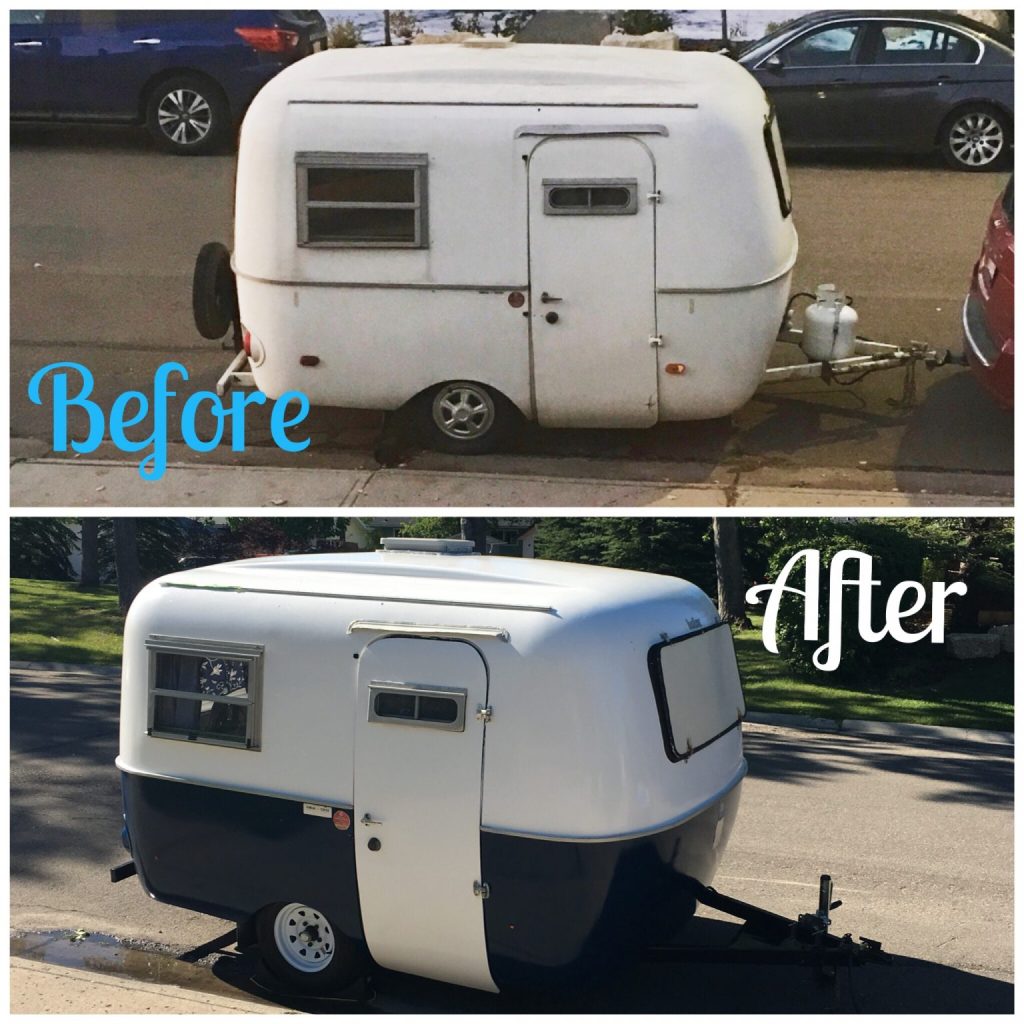 Talking of camping, this leads me nicely on to one of her passions: her Boler. For those of you that may not be aware, a Boler is a small trailer or caravan that is of a vintage quality and pretty cute. Erin purchased a Boler from her aunt in British Columbia that had been sat in a field, unused and neglected, yearning for a life of travel and over time had become a little bit mouldy and sad.