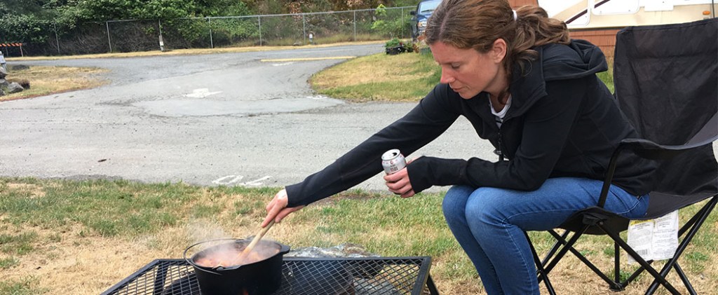 So, having talked about the Boler, it is only right to mention the act that the Boler enables, that of camping and another passion of Erin’s. I have to say that Erin approaches every activity in which she is involved with an inordinate amount of enthusiasm and researches the best ways in which to make camping a memorable experience. I had no idea what a Dutch oven was before camping but now I know that you can make a dump cake* in it, which may need some further explanation so that it is not misconstrued as a treat that you definitely don’t want to eat. My camping culinary skills stretch to one pot meals – cake is something you purchase from the store pre-jaunt and wrap carefully to minimise crumbling. But with Erin, creativity was still king even around a camp fire.