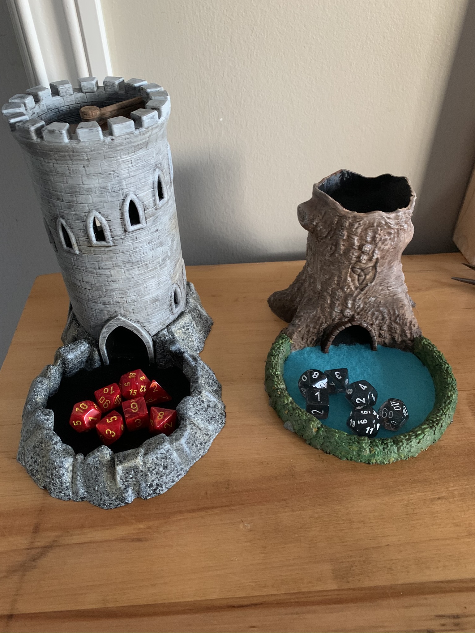 Erin is also passionate about the figures needed as well as dice towers and creates her own 3-D printed representations, skills that have been mostly self taught and honed in her role in the maker space in the university where she works. Some of her creations are pictured above and are pretty cool.