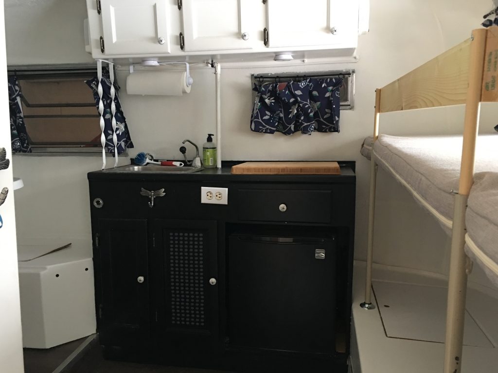 I have had the pleasure of going inside the Boler, fully redecorated in its interior too, with custom features devised by Erin herself, and it is just lovely. In fact, I wouldn’t mind just sitting in it with a nice book and enjoying the space, cosy and comfortable. The satisfaction that she must feel from knowing that that Boler is all her own work must be incredible!
