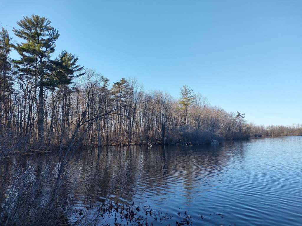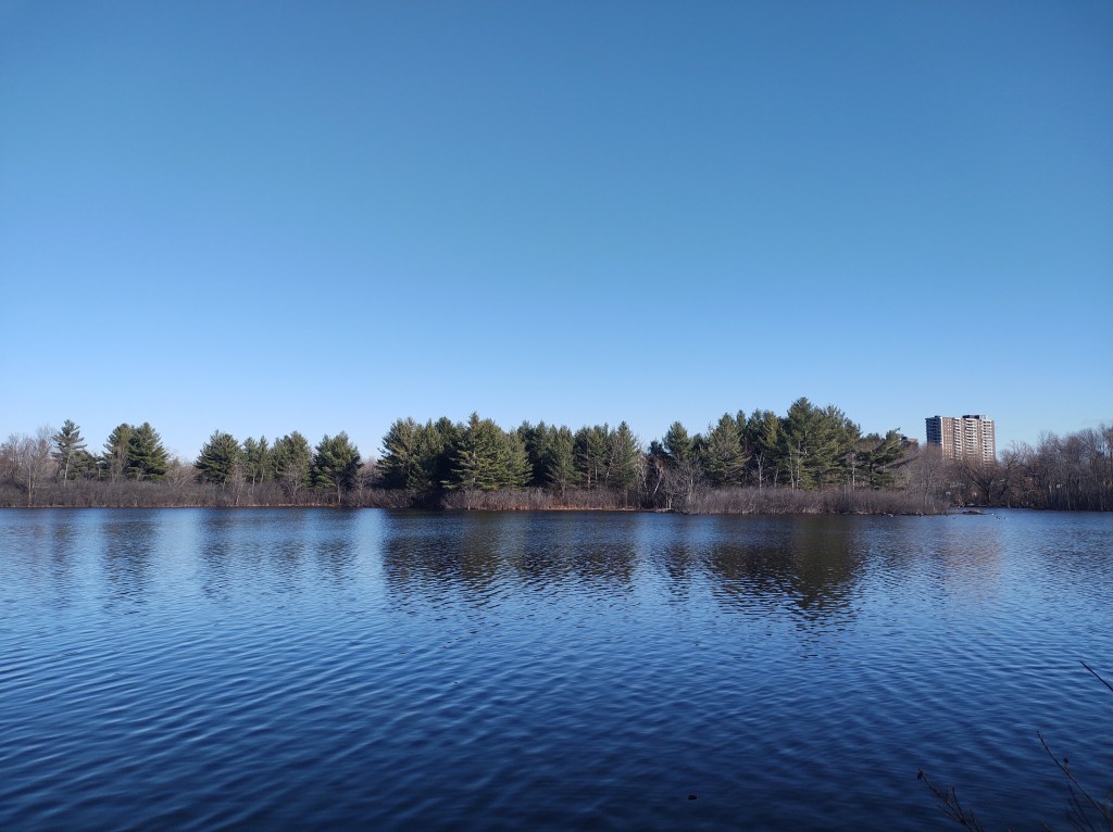 You won’t be surprised to learn then that the name was misleading as this was a very nice lake, surrounded by trees, the usual chickadees (tits) flittering about, diving like mini torpedoes in front of you. It might be different in the summer perhaps but today it was shimmering and watery, just as a lake should be.