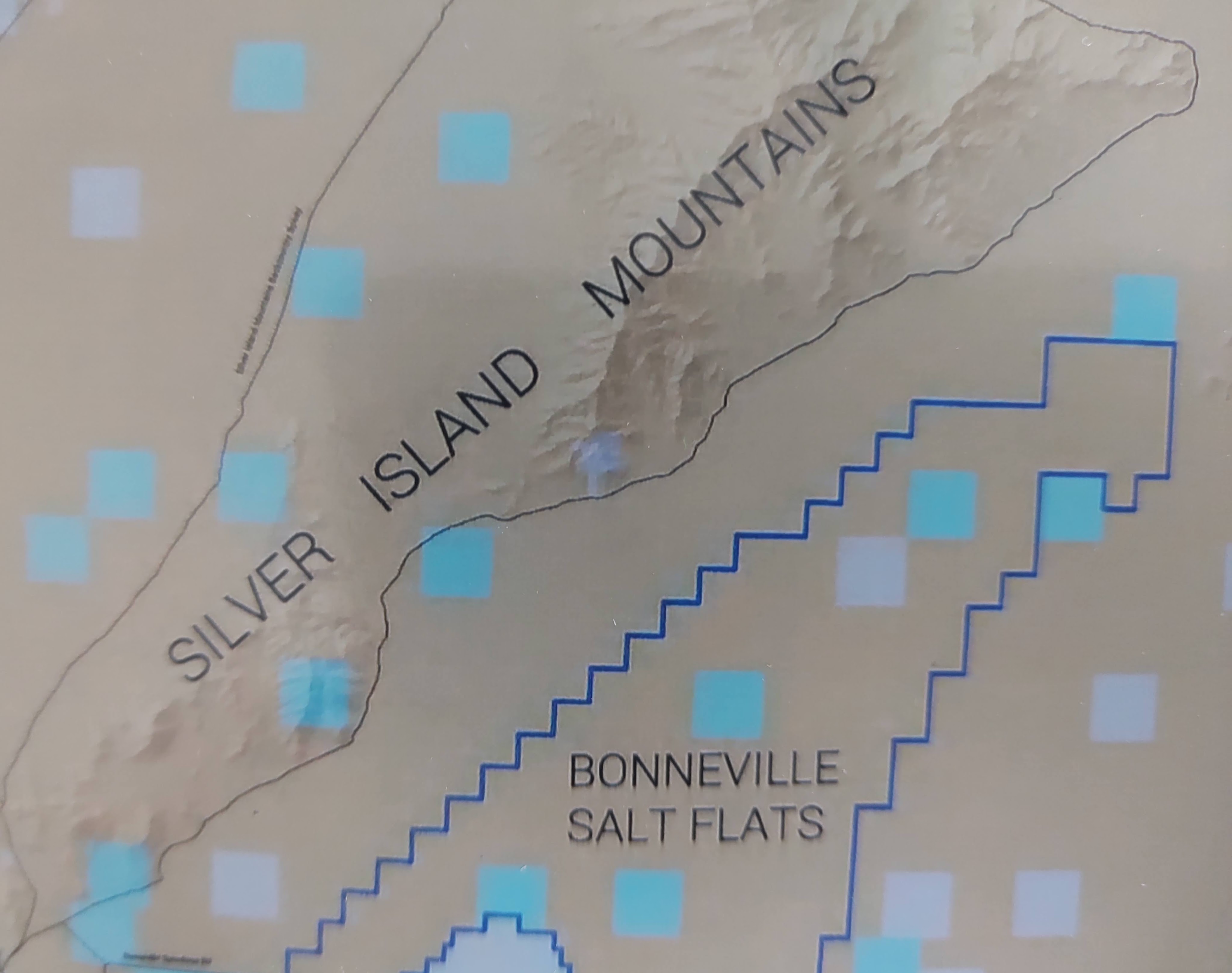 Firstly, the way that you approach the Flats is by actually passing through them as the road from Salt Lake City to the area where you can access them is the main road to somewhere else and so you are driving along on this carriageway and on either side of you is a white stretch of ground, blisteringly bright in the hot Utah sun. Lake Bonneville, when it was a lake, was truly enormous, 51000 square kilometres(!) and so, it is still vast in its new reincarnation as Bonneville Salt Flats.
