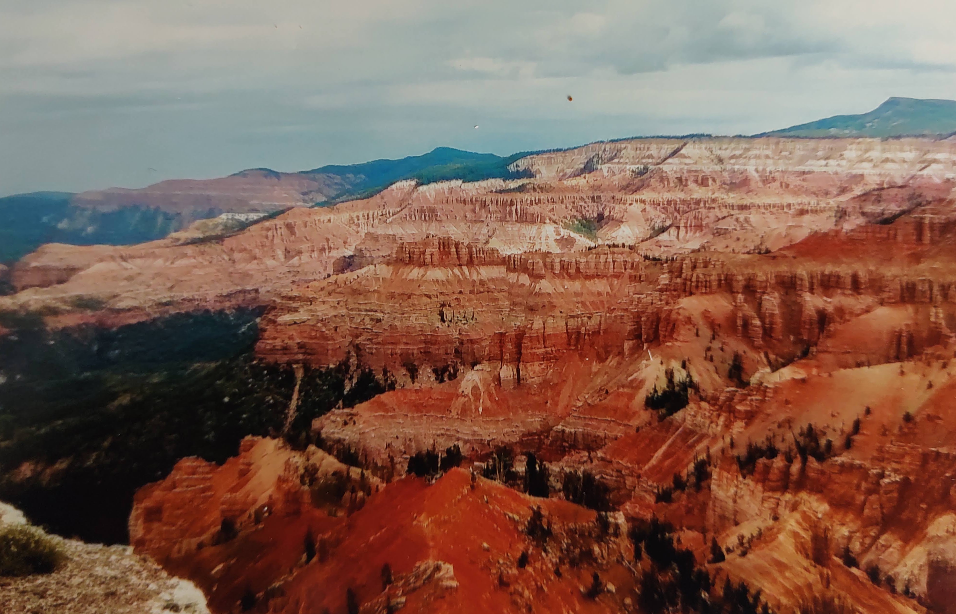 We headed out and made the climb through the woods to Cedar Breaks, stopping on the way in a viewing spot to look out and what a view! The mist was lifting and the landscape was emerging. If this was a sample of what we had ahead of us, then there was much to look forward to.