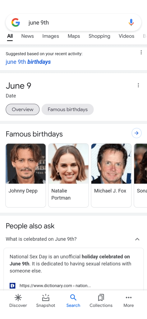 There seems to be an inordinate amount of labelling of days for certain things in these modern times. To prove my point, I bet that if I Googled the date this blog is published, it would be attributed to something. In fact, that is exactly what I am going to do…it is June 9th…it’s Johnny Depp’s birthday as well as Natalie Portman’s and Michael J. Fox’s…and it is also National Sex Day!