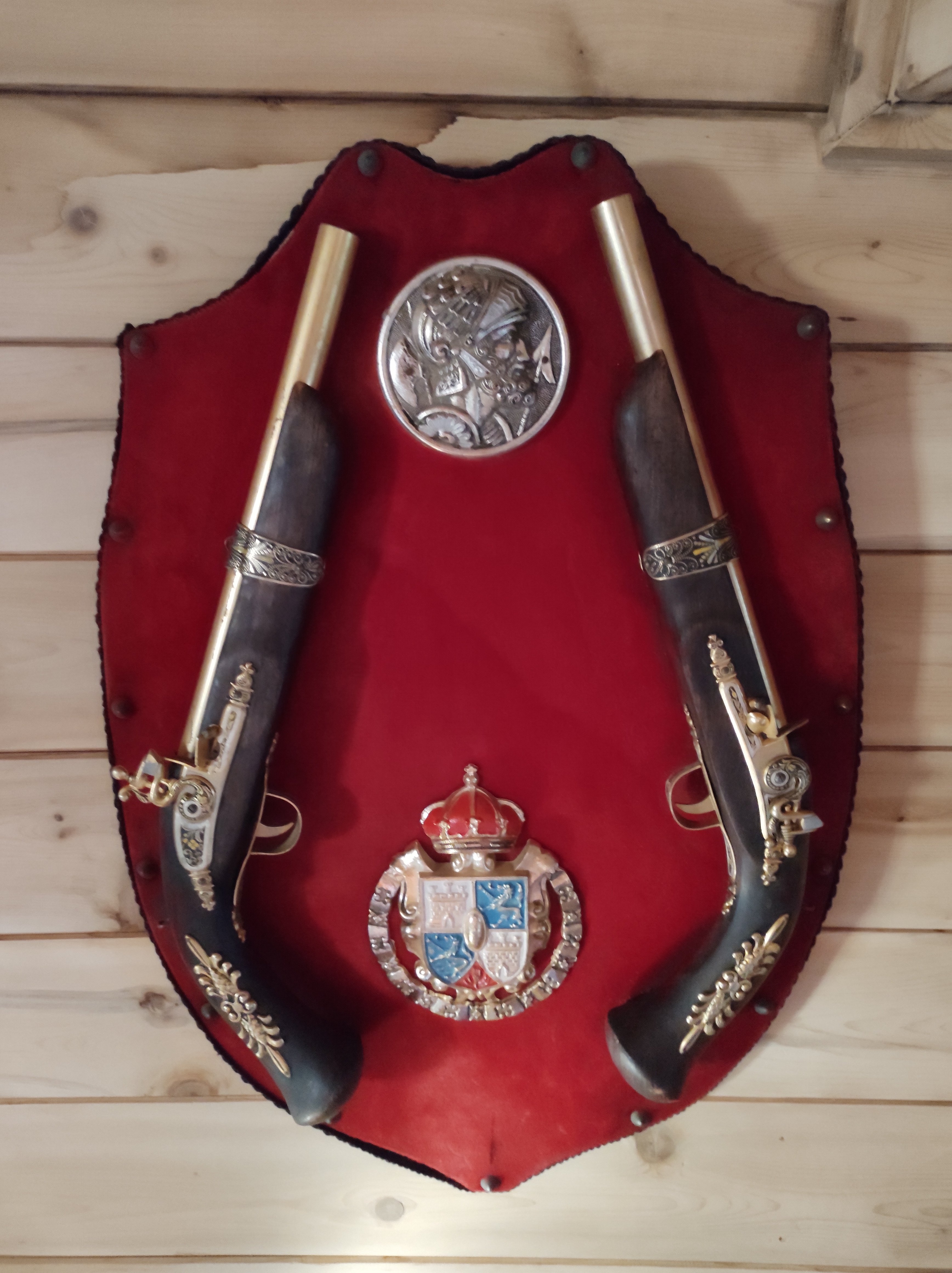 Attempts had been made inside to decorate it sympathetically so there was a bunch of heavy antique keys and a pair of pistols which my youngster was suitably taken with.