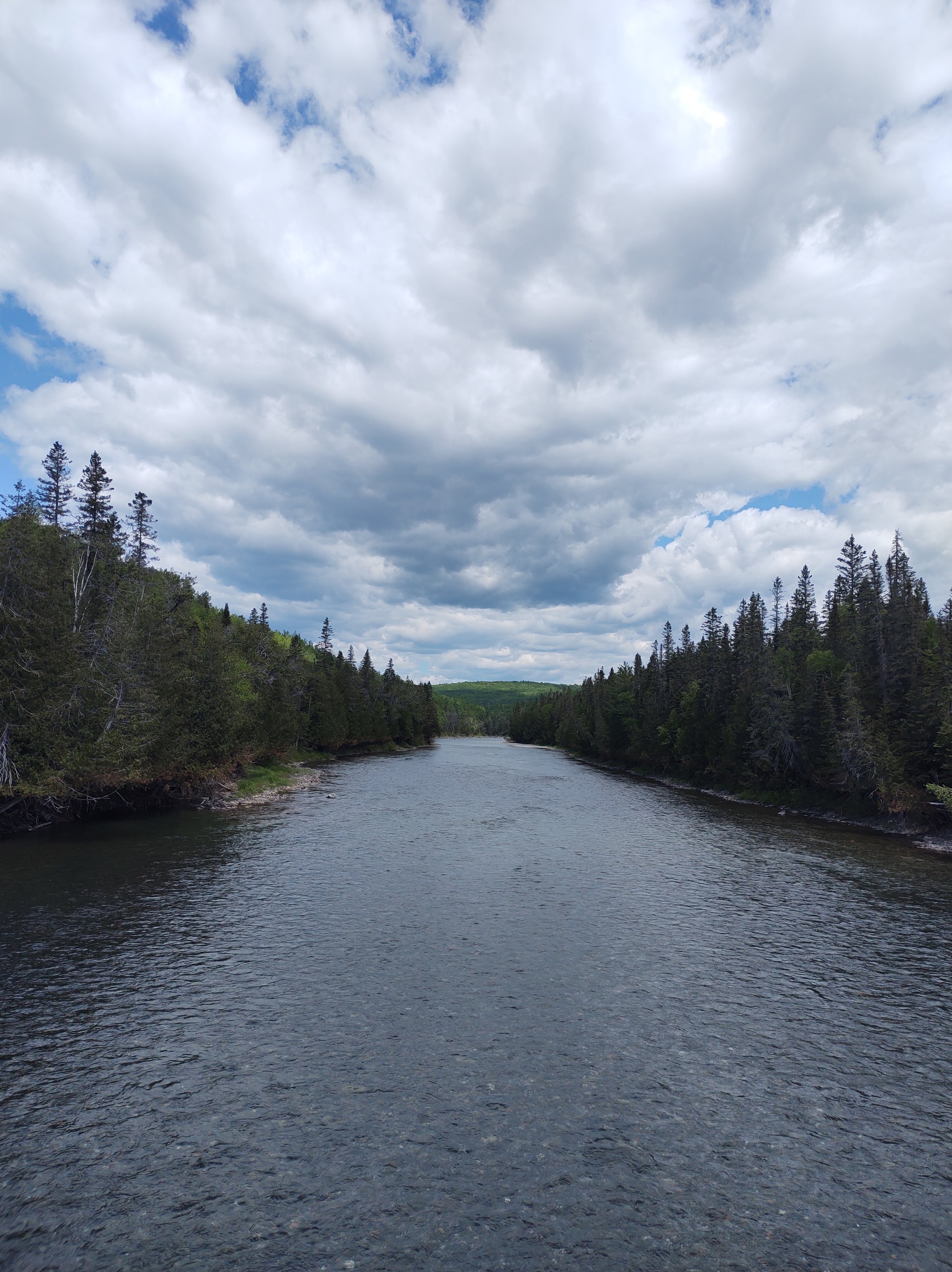 I was hoping that this part of northern Quebec would be comparable to what I had known and I have to say, I was pleasantly surprised by Gaspesie. It was wild, rugged, verdant. It’s not the Rockies but it is similar in the way that the road follows the river and winds through trees, enclosing you but as you travel further, opens out to the rock strewn river bed or the steep slopes of forest stretching towards the sky.