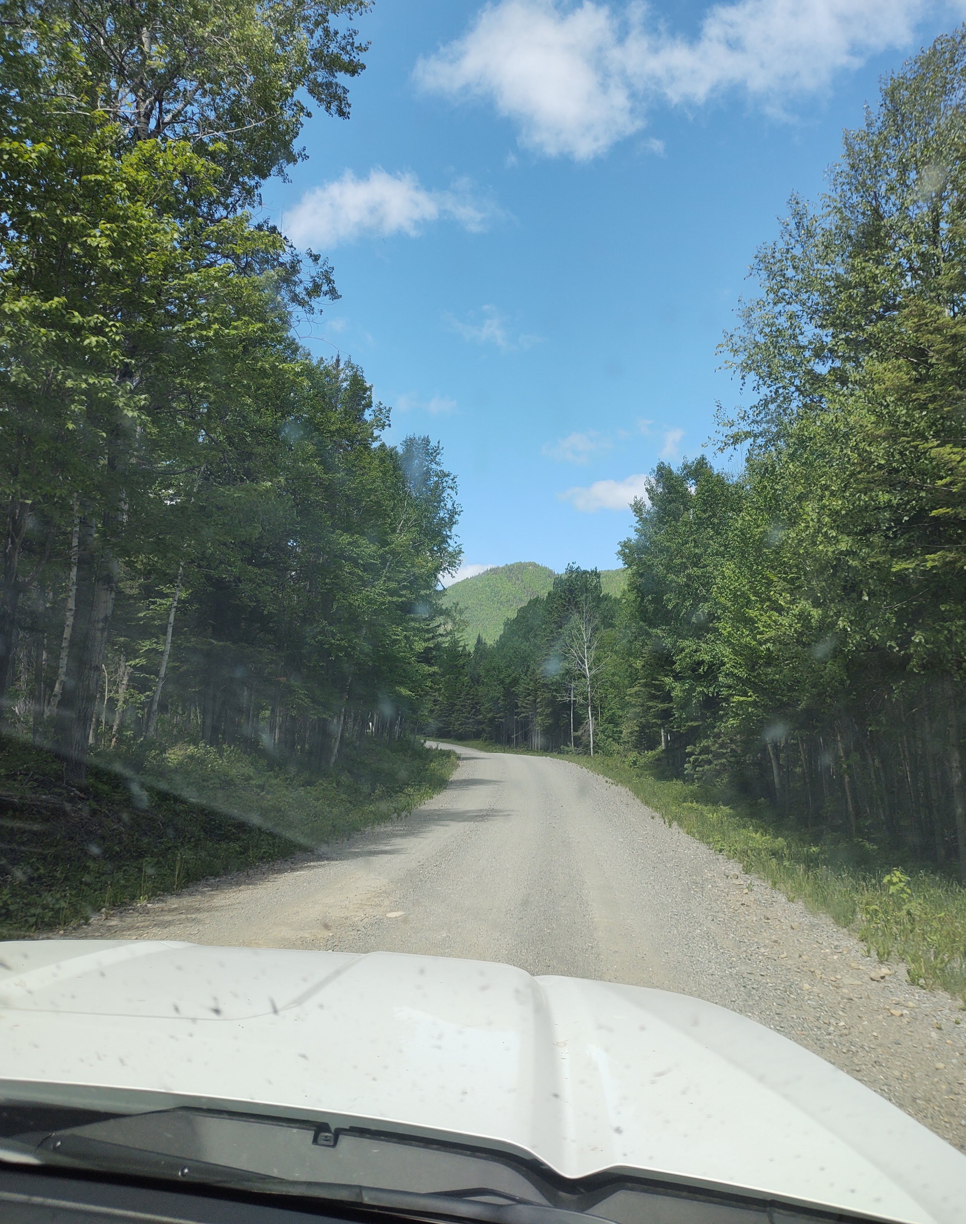Tomorrow, we would have to travel the ten hours back to Ottawa and would once more be back in the suburbs. So, it was only right that we should see if we could find somewhere to have lunch and savour the mountains and lakes for a little longer. We headed to Lake Cascapédia along a dirt road that tested the suspension on our truck as well as our abilities to keep our teeth in our heads. But the bone-rattling drive was worth it as we parked and headed towards the lake and encountered the views below.